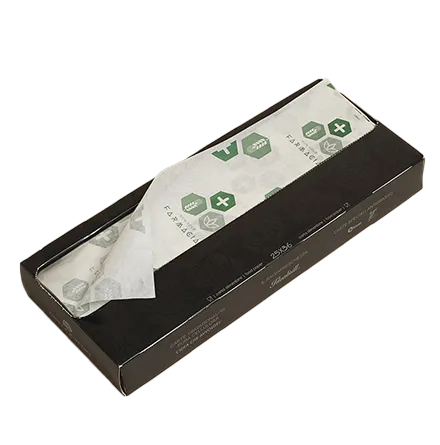 Our parchment paper is compostable and must thus be disposed in the organic recycling bin.