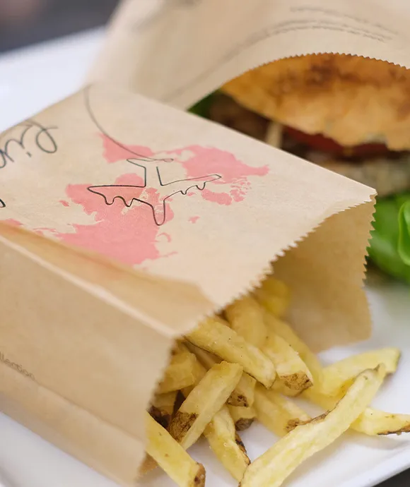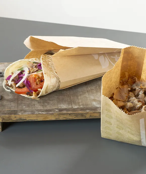 The Olà greaseproof paper is available in many different sizes, ranging from wrappers turning into placemats, supports for chopping boards, paper cones for fried food to bags in several sizes and grammage to meet all HO.RE.CA. and street food industry needs.